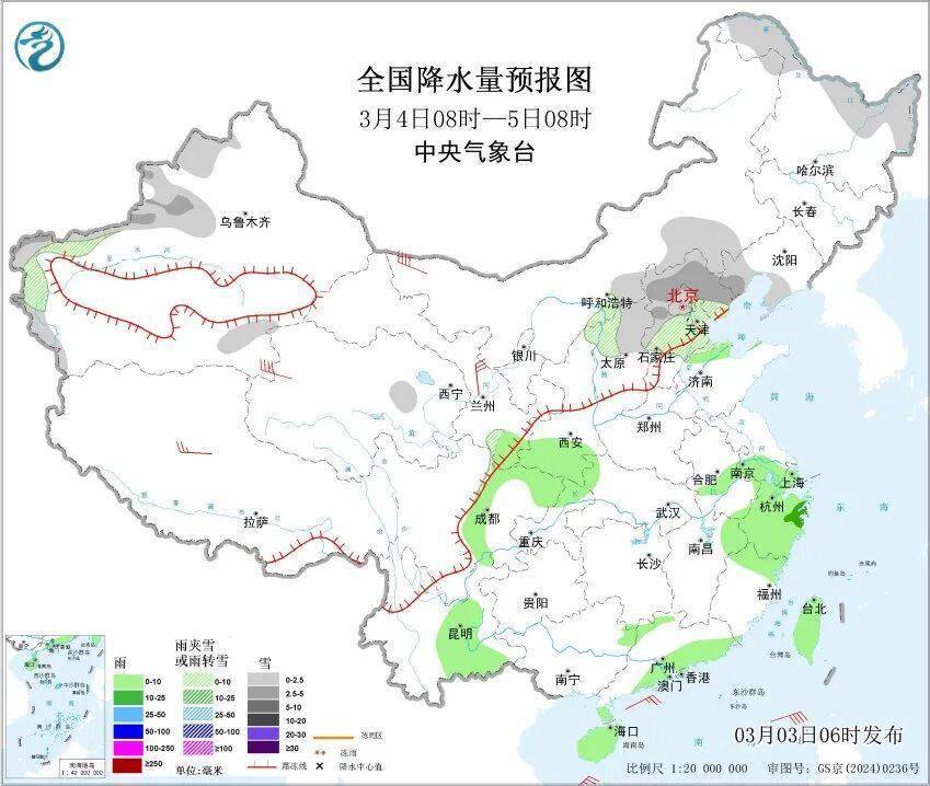 大城市中,华北的北京、天津、石家庄明后天都可能有雪花飘落,天津今天最高气温可达10℃,但受降雪和冷空气影响,明后天将跌至仅有3至4℃,寒冷感回归。江南的南京、上海等地未来三天最高气温普遍仅有10℃出头,阴冷持续。