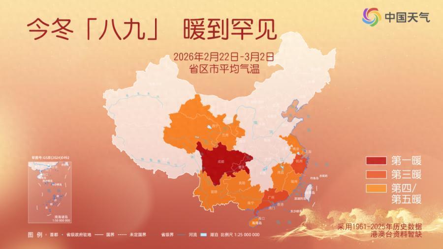 据国家气候中心监测数据显示,在刚刚过去的冬季(2025年12月1日至2026年2月28日),全国平均气温为-1.54℃,较常年同期偏高1.51℃,为1961年有气象观测历史以来第二暖。其中“八九”的气温较常年同期显著偏暖,15省区市平均气温达到同期前五位,四川为历史第一暖。